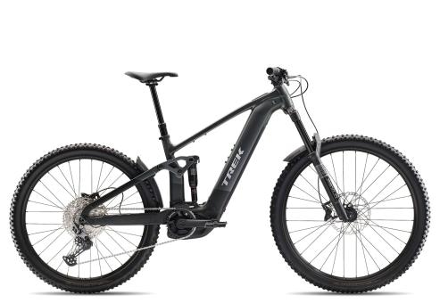 Dank Treks RIB 2.0 System sitzt der Akku des Trek Rail+ 5 Gen 5 formschön im Unterrohr und lässt sich einfach entnehmen., Perfekt, um nach anspruchsvollen Touren den Akku Zuhause aufzuladen., Original Bosch Displays können optional aber auch nachgerüstet werden., Die 4-Kolben-Scheibenbremsen, ebenfalls aus dem Hause Shimano, bieten kraftvolle Verzögerung bei jeder Abfahrt., Das solide Trek Rail+ 5 Gen 5 Long-Travel-E-MTB bringt dich mit Bosch Performance Line CX Motor und riesigem 800 Wh Akku durch jedes Terrain., Egal ob steile Anstiege, ruppige Wurzelpassagen oder flowige Downhills., Der Alpha Platinum Aluminium-Rahmen des Trek Rail+ 5 Gen 5 bietet eine robuste Basis für harte Enduro-Einsätze., Die LED-Remote sorgt für eine intuitive Steuerung und kann mit deinem Smartphone gekoppelt werden, um dieses als Display zu nutzen., Mit der gruppenreinen Shimano Deore 12-fach Schaltung (mit 11-51 Zahn Kassette) hast du die richtige