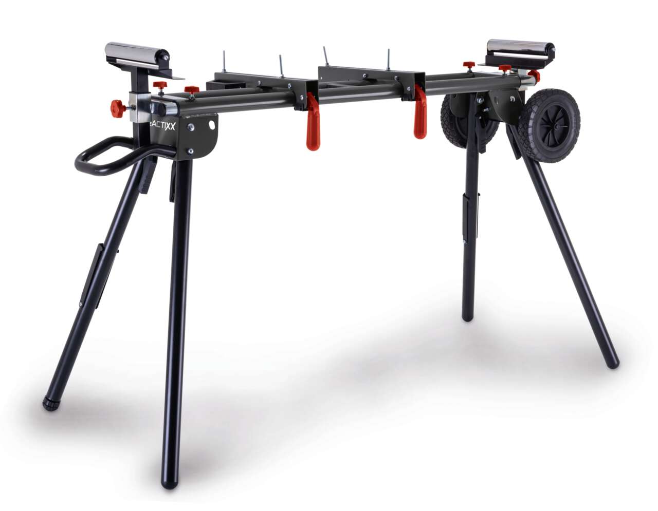 Arbeiten Sie professionell und mit höchster Präzision – das Practixx PX-UG-2000R Untergestell für Kappsägen wurde entwickelt, um Ihre Arbeitseffizienz zu steigern und Ihnen gleichzeitig höchsten Komfort zu bieten. Die universell einstellbare Maschinenaufnahme bietet Flexibilität und Sicherheit für nahezu alle Kapp- und Gehrungssägen. Arbeiten in ergonomischer Arbeitshöhe – Höhenverstellbar 90-100cm Stabile große ausziehbare Seitenverlängerung von 118,5cm bis zu 200cm Max. Traglast von 200kg | Klappbare Werkstückablage für bequemes Arbeiten Robuste und zugleich kompakte Leichtbauweise für einfachen Transport und Lagerung Einfacher Transport durch integrierte Fahrvorrichtung (zwei 8″ Räder) und Haltegriff komfortable klappbare Werkstückauflage an den Beinen des Untergestells Verstellbarer Fuß ermöglicht den Einsatz auf unebenen Flächen Das ergonomische Design ermöglicht es Ihnen, in einer komfortablen Arbeitshöhe zwischen 90 und 100 cm zu arbeiten, was Ermüdung minimiert und präzise Schnitte erleichtert. Mit einer beeindruckenden maximalen Traglast von 200 kg bietet das PX-UG-2000R Untergestell die notwendige Stabilität für anspruchsvolle Aufgaben. Die großzügige ausziehbare Seitenverlängerung von 118,5 cm bis zu 200 cm ermöglicht es Ihnen, auch größere Werkstücke sicher und präzise zu bearbeiten. Die Höhenverstellbarkeit der Rollenführung an den Seitenverlängerungen gewährleistet eine exakte Anpassung und garantiert so perfekte Schnittergebnisse. Die klappbare Werkstückablage an den Beinen des Untergestells sorgt für ein komfortables Arbeiten. Ein weiteres Highlight ist der verstellbare Fuß, der den Einsatz des Untergestells auch auf unebenen Flächen ermöglicht. So schaffen Sie stets eine stabile Arbeitsumgebung. Die integrierte Fahrvorrichtung mit zwei 8-Zoll-Rädern und einem Haltegriff ermöglicht einen bequemen Transport. Die robuste und dennoch kompakte Leichtbauweise des Untergestells gewährleistet zudem eine einfache und platzsparende Lagerung.
