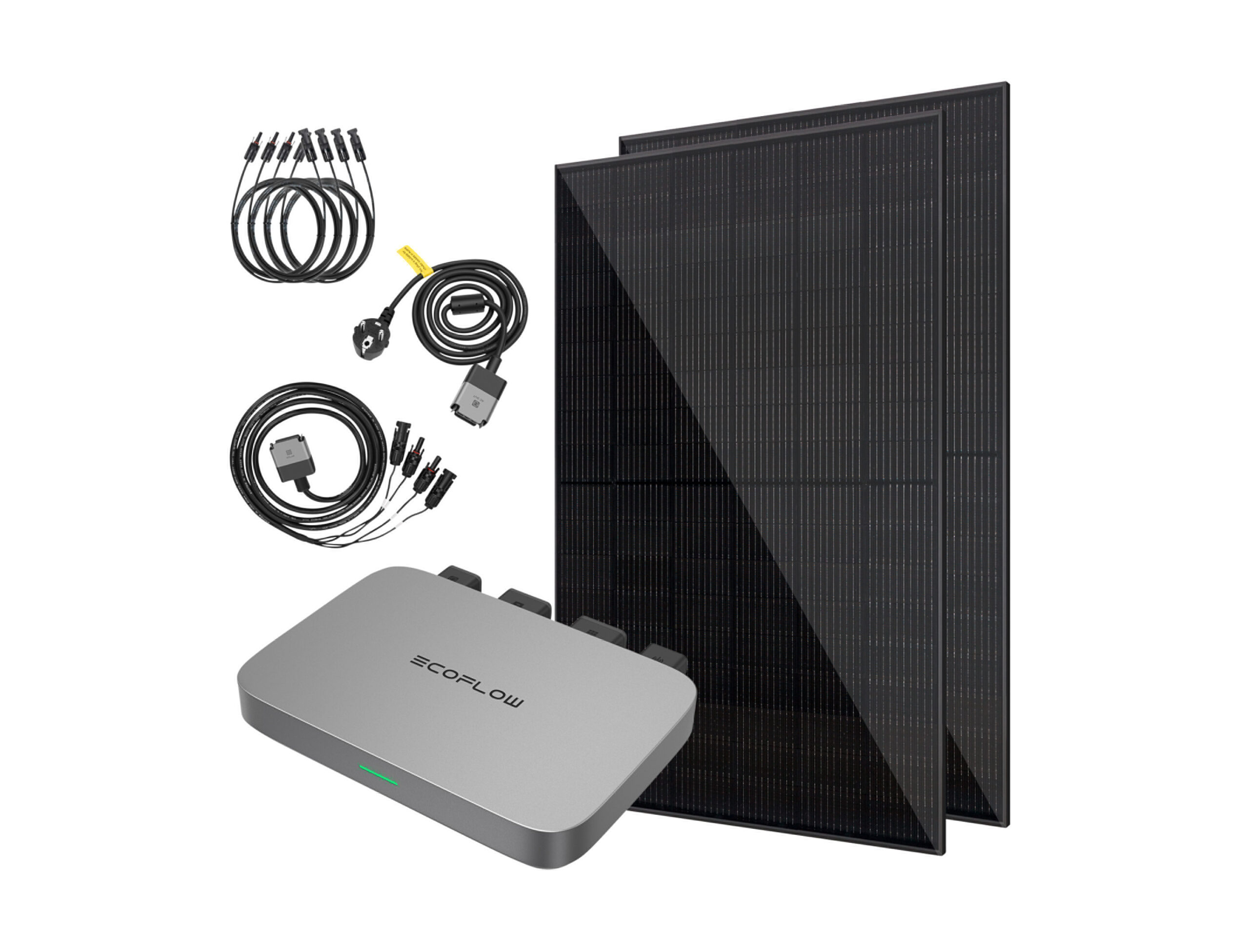 Vale Balkonkraftwerk Ecoflow 860 Wp / 800 W, WiFi, Bifaziale Solarmodule “Bei uns kommt der Strom aus der Steckdose!” – Selbst erzeugt mit unserem Vale Balkonkraftwerk. Die Mini-Photovoltaikanlage ist ein kleines Solarkraftwerk, mit der du deinen eigenen Haushaltstrom erzeugen kannst. Bis zu 800 kWh/Jahr – das schont die Umwelt und ist dein Beitrag zur Energiewende Es besteht aus zwei Solarmodulen, einem Mikro-Wechselrichter und allen benötigten Verbindungskabeln. Die Solarmodule wandeln die Sonnenstrahlen in elektrische Energie um, die der Mikro-Wechselrichter in eine beliebige Steckdose in dein Hausnetz einspeist. Somit werden deine elektrischen Verbraucher mit Energie versorgt und damit ein Großteil des Verbrauchs abgedeckt. Erzeuge so bis zu 800 kWh/Jahr. Das schont deinen Geldbeutel, die Umwelt und ist dein Beitrag zur Energiewende! Ob im Garten, auf der Terrasse, an der Fassade, am Balkon, auf dem Garagendach – überall wo die Sonne hin scheint, lässt sich Solarenergie ernten. Effiziente monokristalline Solarmodule: Hohe Leistung und elegantes Design Die eleganten bifazialen Premium Hochleistungs-Solarmodule erzielen hohe Wirkungsrade und bieten auch bei schwachen Lichtverhältnissen einen hohen Energieertrag. Geringere Leistungsverluste dank intelligenter Zellverschaltung erhöhen den Wirkungsgrad des Solarmoduls und damit gesteigerte Solarerträge. Die Solarmodule liefern zusammen eine Leistung von bis zu 860Wp und – dank der bifazialen Konstruktion – je nach Aufstellort nochmals bis zu 30% mehr Ertrag, in Summe also bis zu 1.118Wp zur Umwandlung in Wechselstrom an den Wechselrichter. Die schwarze Ausführung und die sich dezent zurückhaltende Gitterstruktur der Zellverschaltung verleihen den Panels ein elegantes Design. Steckerfertig geliefert, einfach montiert, ruckzuck angeschlossen Das Vale Balkonkraftwerk erfüllt alle gesetzlichen Anforderungen gemäß der Netzanschlussvorgaben nach En50549, Vde0126 und Vde4105. So kannst du deine MiniPV problemlos im Marktstammdatenregister anmelden. Der 800W Ecoflow PowerStream Premium Mikro-Wechselrichter ist ideal für dein einphasiges netzgekoppeltes Balkonkraftwerksprojekt. Ecoflow ist einer der weltweit führenden Hersteller von Komponenten und Systemen für nachhaltige Energien! Klein, leicht und robust, auch direkt an der Solarmodulhalterung montierbar, bietet er die Anschlussmöglichkeit für 2 Solarmodule (jeweils mit eigenem MPP-Tracker, Anschluss über MC4-Steckverbindungen) und deinem Hausnetz. Dank seines integrierten WiFi-Moduls lassen sich die Produktionsdaten der Solaranlage von überall her über die kostenlose EcoFlow-App abrufen. Konstruiert nach Schutzart Ip67 und damit bestens gewappnet für den Außeneinsatz. Seine Zulassungen nach En50549, Vde0126, Vde4105, Iec62109 sichern einen legalen Betrieb, inkl. NA-Schutz und VDE-gerechter Schnellabschaltung bei Trennung von der Netzstromversorgung. Lieferumfang 2x Premium Solar Photovoltaikmodule, Bifazial, Black, je 430 Wp (Bifazial bis zu 559Wp), ca. 172,2 x 113,4 x 3,0 cm, ca. 21,5 kg/Stk, 15 Jahre Produktgarantie, 30 Jahre Leistungsgarantie 1x Ecoflow PowerStream 800W Premium Mikro-Wechselrichter Efwn511 (1-phasig, 2 Mppt), 10 Jahre Produktgarantie, ca 24 x 17 x 3,3 cm 1x Ecoflow Solaranschlusskabel (2 m) für zwei Solarmodule 1x Ecoflow AC-Anschlusskabel (1,5 m) zur Verbindung von Wechselrichter mit Schutzkontakt-Steckdose 4x MC4-Verlängerungskabel (je 2 m) Quick-Start-Guides Wichtige Hinweise Bitte beachte bei der Installation die örtlichen Bau- und elektrischen Vorschriften. Der Anschluss an dein Stromnetz sollte durch eine Elektrofachkraft erfolgen. Photovoltaikanlagen bis zu 800 W Einspeiseleistung sind genehmigungsfrei. Sie müssen aber im Markenstammdatenregister der Bundesnetzagentur angemeldet werden. Die Anmeldung ist einfach und über das Internet möglich. Für die Anbringung der Solarmodule sind separat im Handel zu erwerbende Halterungen erforderlich. Auch für die Montage der Solarmodule sollte ein Fachmann hinzugezogen werden. Die Batterie wird zwischen die Solarmodule und den Wechselrichter geschaltet. Solarmodule an den PV-Eingang der S1000 und die Solareingänge des EcoFlow-Wechselrichter werden mit dem Ausgangskabel der Batterie verbunden (über die der Batterie beiliegende Y-Kabel mit MC4-Verbindern). Der Batterie-Stecker am Wechselrichter ist NUR für Batterien von EcoFlow gedacht und wird bei diesen DC-DC-Batterien wie der S1000 nicht benutzt. Dieses Angebot enthält bereits den ab dem 1. Januar 2023 gültigen MwSt.-Satz in Höhe von 0% gemäß UStG §12 Absatz 3. Vale – Dein Partner bei der Energiewende