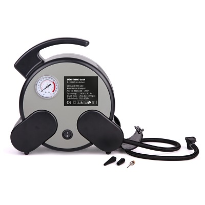 Der Volcano Ballkompressor Kompakt – kleiner Kompressor mit starker Leistung – Der Volcano Ballkompressor Kompakt ist ein handlicher, tragbarer Druckluftkompressor. Durch sein schlagfestes ABS-Gehäuse ist er äußerst robust. Dank Hochleistungsmotor mit Direktantrieb können Sie Bälle und weitere Produkte wie Reifen, Gummiboote oder Luftmatratzen in kürzester Zeit aufpumpen. Auch als Fahrradpumpe geeignet für Schläuche mit Autoventil sowie zum Aufpumpen von Autoreifen. Der Druckluftkompressor wird ohne Öl betrieben, sodass Sie keine Schmierung oder Wartung durchzuführen brauchen. Zu seiner Ausstattung gehören auch ein Druckmessgerät mit praktisch abzulesender Druckanzeige, eine Ventilnadel, ein Hebelstecker und zwei Aufblasdüsen unterschiedlicher Größe. Achtung: verwenden Sie den Kompressor nicht bei Regen und lagern Sie ihn stets trocken. – Produktdetails: – Material Gehäuse: Kunststoff (ABS) – Abmessungen (LxBxH): 26x14x27 cm – Gewicht: 3,7 kg – Farbe: Schwarz-Grau – Nennspannung: 230V ~, 50 Hz – Aufnahmeleistung: 145 Watt – Maximaldruck: 20,6 bar (300 psi) – Luftdurchsatz: 27 l/min (bei 1 bar) – A-bewerteter Schalldruckpegel: 78,1 dB(A) – Einheiten Druckanzeige: kg/cm² bar, lb/in² – Sicherung: 3,0 Amp Einbausicherung – Lieferumfang: Druckmessgerät, Hebelstecker, Ventilnadel und 2 Aufblasdüsen