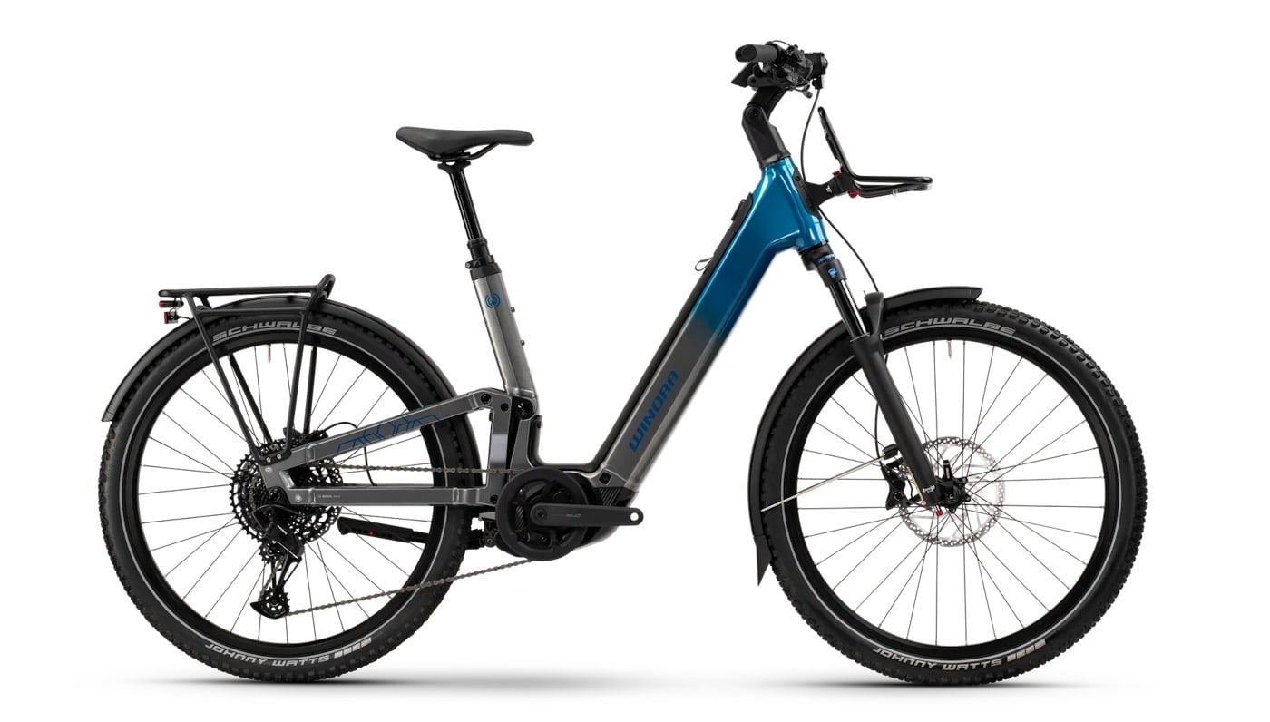 Federleicht durch jeden Tag. Das Winora Sinus FS X12 nimmt dieses Motto wörtlich. Dank seinem Fully-Setup mit Rahmenfederung bietet unser neues Komfort E-Bike maximale Leichtigkeit auf all deinen Touren. Die vom MTB-Bereich inspirierte Dämpfung ist dabei bei weitem nicht das einzige Feature, das höchsten Fahrgenuss verspricht: Die aktuellste Generation des Bosch Performance CX Antriebs mitsamt 800 Wh Batterie verwandelt auch steile Berge in Flachlandstrecken, während die absenkbare Sattelstütze und der tiefe Einstieg das Auf- und Absteigen im Stadtverkehr spürbar erleichtern. Volle Alltagstauglichkeit genießt du dank der Klickfix-Halterung mit Frontgepäckträger sowie dem Gepäckträger am hinteren Rahmendreieck. Typisch Winora verfügt das Rad zudem über ein zulässiges Gesamtgewicht von 150 kg – und trägt damit auch schwere Lasten. Die wirst du beim Pedalieren übrigens nicht spüren. Denn das Fahren ist mit diesem E-Bike federleicht.