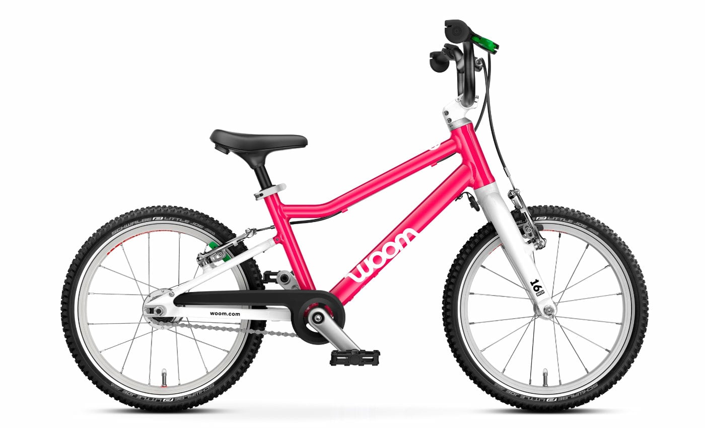 Das Woom GO 3 AUTOMAGIC (Gen. H) in hot pink ist ein innovatives 16-Zoll-Kinderfahrrad, das speziell für Kinder im Alter von 4 bis 6 Jahren und einer Körpergröße von ca. 105 – 120 cm entwickelt wurde. Mit einem Gewicht von nur 6,2 kg bietet es jungen Fahrern ein leichtes und sicheres Fahrerlebnis. Automatische 2-Gang-Nabenschaltung für müheloses Fahren Ein herausragendes Merkmal des Woom GO 3 AUTOMAGIC (Gen. H) ist die automatische 2-Gang-Nabenschaltung. Diese innovative Technologie ermöglicht es dem Kind, ohne manuelles Schalten stets im optimalen Gang zu fahren. Bei einer Geschwindigkeit von etwa 11 km/h wechselt die Nabenschaltung automatisch in den zweiten Gang, was das Fahren auf ebenen Strecken erleichtert. Verlangsamt das Kind, schaltet die Nabe zurück in den ersten Gang, ideal für Anstiege oder Anfahrten. Kindgerechtes Design für optimale Sicherheit Tiefer Einstieg und aufrechte Sitzposition: Diese Merkmale erleichtern das Auf- und Absteigen und fördern eine natürliche Haltung während der Fahrt. Langer Radstand und fehlerverzeihende Lenkgeometrie: Sie sorgen für ein stabiles Fahrverhalten und unterstützen Kinder dabei, das Gleichgewicht zu halten. Sicherheitsmerkmale im Überblick Grüne Hinterradbremse: Ein auffällig grüner Bremshebel kennzeichnet die Hinterradbremse, um Verwechslungen zu vermeiden. Die ergonomisch geformten Bremshebel sind speziell für kleine Kinderhände entwickelt und lassen sich mit minimaler Handkraft bedienen. Lenkeinschlagsbegrenzer: Ein flexibler Gummiring zwischen Gabel und Rahmen verhindert ein Überdrehen des Lenkers und damit verbundene Stürze. Ergonomische Griffe: Die Griffe haben einen schmalen Durchmesser und sind ergonomisch geformt, um kleinen Händen optimalen Halt zu bieten. Das spezielle Material und der extra große Außendurchmesser schützen zusätzlich vor Verletzungen. Komfort und Fahrspaß Der speziell entwickelte Kindersattel passt sich dem Becken von Kindern in diesem Alter an und sorgt für höchsten Komfort. Die leichten, griffigen Reifen bieten sicheren Halt auf verschiedenen Untergründen und ermöglichen ein müheloses Vorankommen. Zudem erleichtert der Sattelschnellspanner die Anpassung der Sitzhöhe ohne Werkzeug, sodass das Fahrrad mit dem Wachstum des Kindes mitwachsen kann. Fazit Das Woom GO 3 AUTOMAGIC (Gen. H) kombiniert durchdachtes Design mit innovativer Technologie, um Kindern im Alter von 4 bis 6 Jahren ein sicheres und spaßiges Fahrerlebnis zu bieten. Die automatische 2-Gang-Nabenschaltung ermöglicht es jungen Fahrern, sich voll und ganz auf das Fahren zu konzentrieren, ohne sich um das Schalten kümmern zu müssen. Es ist die ideale Wahl für Eltern, die Wert auf Qualität, Sicherheit und Fahrspaß legen.