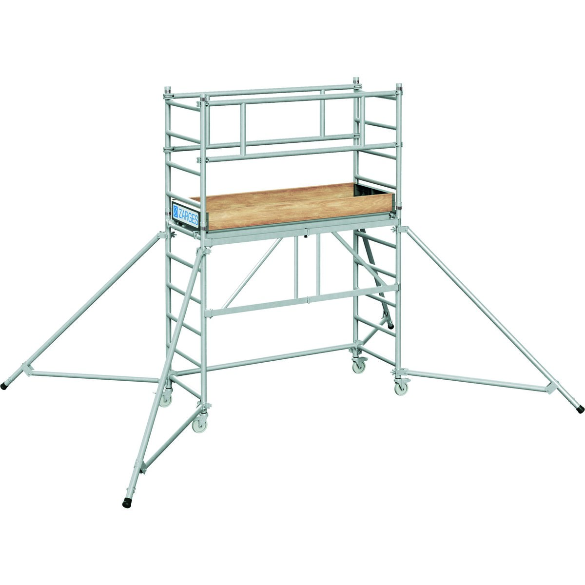 PaxTower 1T – Klappgerüst, Arbeitshöhe 3,55 mEinfache Einhandbedienung des Klapprahmens mit robustem Arretierknopf: Feststellen und lösen mit nur einem Klick.Leichtlauf Aufsteckführung aus Hartkunststoff: Kein Verkanten beim Zusammenführen der Aufsteckrahmen.Patentierte Bordbrett-Einheit: Schnell platziert, schnell fixiert.Gerüstlänge: 1,80 m; Gerüstbreite: 0,72 m.Nach neuer EN 1004; Gerüstklasse 3 (belastbar bis 200kg/m²).125 mm Lenkrollen mit Feststellbremse; diese sind durch Rollenadapter (Bestell-Nr. 42974) zu spindelbaren Rollen aufrüstbar.Holm- und Sprossendurchmesser 45 mm.Das Gerüst entspricht der neuen Norm DIN EN 1004-1
