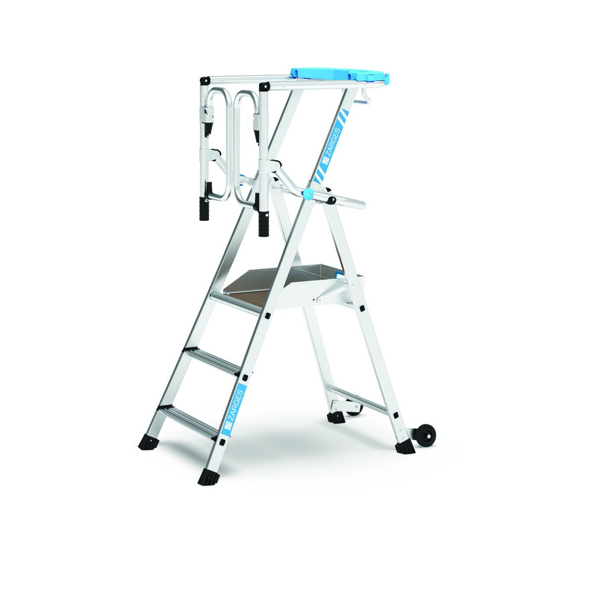 Die neue Plattformleiter setzt durch ihre umfangreiche Ausstattung neue Standards hinsichtlich Sicherheit und Komfort und besticht durch ein schnelles, unkompliziertes Handling. Erfüllt alle Kriterien nach EN 131-7Maximal sicheres und beidhändiges 360° Arbeiten in verschiedenen Höhen auf großflächiger Plattform mit solidem, umlaufendem Geländer und automatischer Sicherheits-Saloontüre.Komfortabler und sicherer Auf- und Abstieg auf 60mm breiten Stufen.Perfekte Arbeitsorganisation in der Höhe mit großer, durchdachter Werkzeugablage.Große Offroad-Rollen für einen leichten Ortswechsel auch im aufgebauten Zustand.Ab 5 Stufen mit AuslegerErhältlich in 5 Größen mit maximaler Arbeitshöhe bis 3,70 m.Hinweise und BesonderheitenEN 131-7